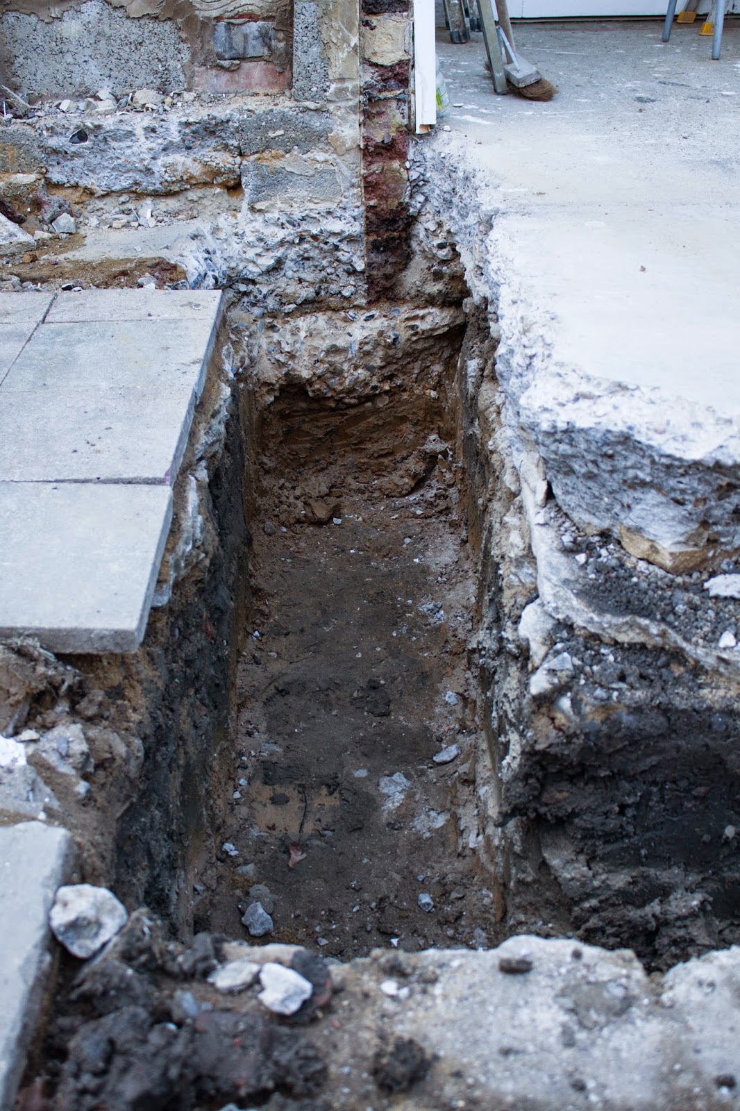 On day 2, the builders continued demolishing the old extension and dug app. 1 meter down where we could see the foundations of our house. It was quite a sight. It was exciting to see the amount of brick that was holding up pretty much the entire kitchen and first floor bedroom. Obviously, the foundations for the new extension will need to be deeper than that due to current building regulations. But, there is nothing wrong with the old ones and they have been going strong since the 1930s.