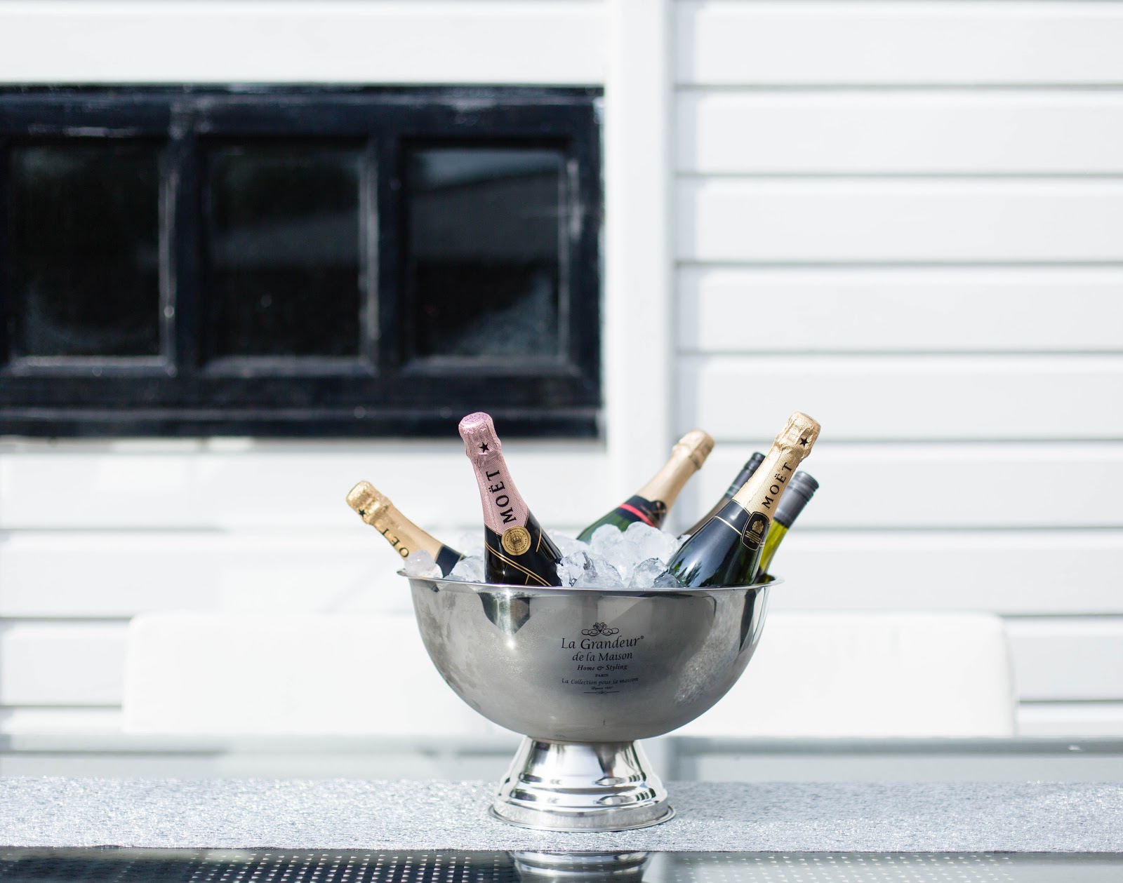 We decided to extend our entertaining area to our decking since the weather has been pretty incredible lately. I’m so glad we did because everyone seemed to prefer the decking. Our garden table is such a good size that it was ideal for a wine and canapé station.  I ordered the stainless steel Champagne Bowl from Ebay very last minute. It was such a bargain for £20  so I couldn’t help myself. It’s pretty big so it makes a great center piece too. It was such a clever call because it meant that the guests could help themselves and I didn’t need to run to the fridge every time someone needed a refill. The Silver Lace Runner is from Amara. I bought it few years ago and it’s perfect for formal parties. We ordered all the party food from M&S but sadly I don’t have many pictures of the selection. Everything was delicious though! We went for a nice mix of everything; sandwiches, canapé, mini burgers, fruits, mini cakes etc.