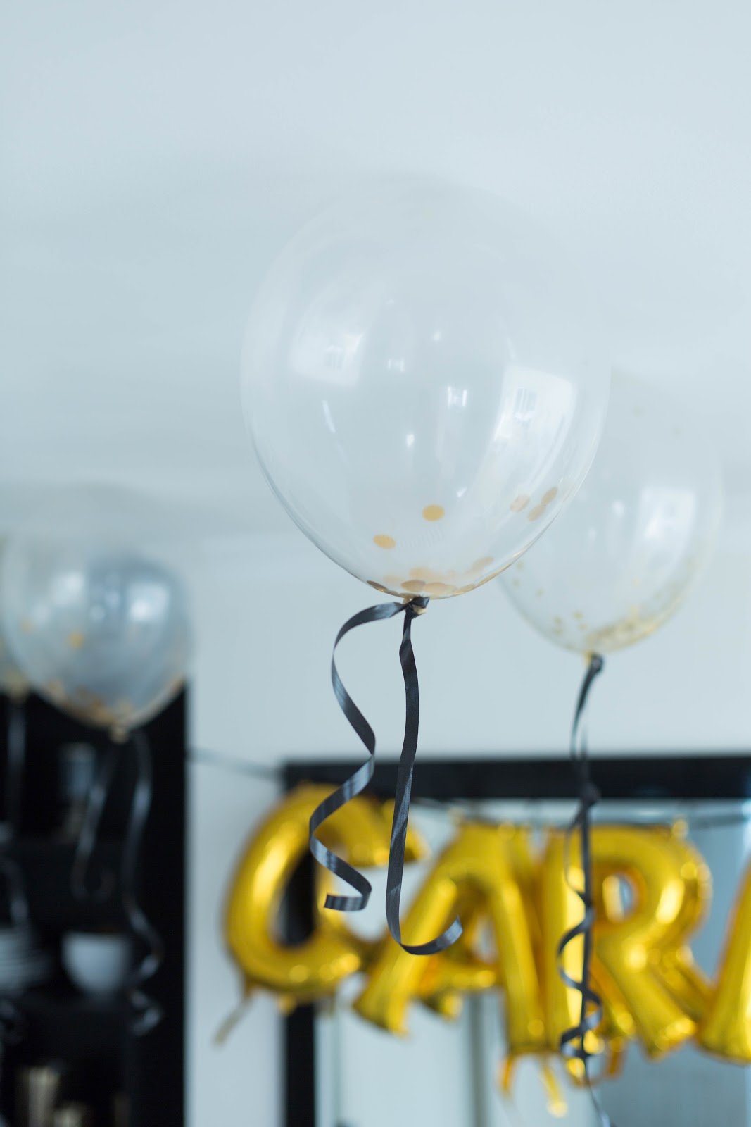Foil letter balloons are another big Instagram hit. They can be used for kids parties, weddings, christening parties or any big event really.  I love how versatile they are and of course I love the fact that I managed to find ones in gold. The letter balloons were from Party Delights and as you can see they are the perfect size for our dining room. Always check the size by the way. People usually find that they look smaller than expected but when you group quite a few letters together they make a big impact. The gold confetti balloons looked so classy but I totally forgot that latex balloons only really last a day or so. Annoyingly we blew up the gold confetti balloons the night before and some of them weren’t staying up the next day. So ideally blow them up on the day if you can.