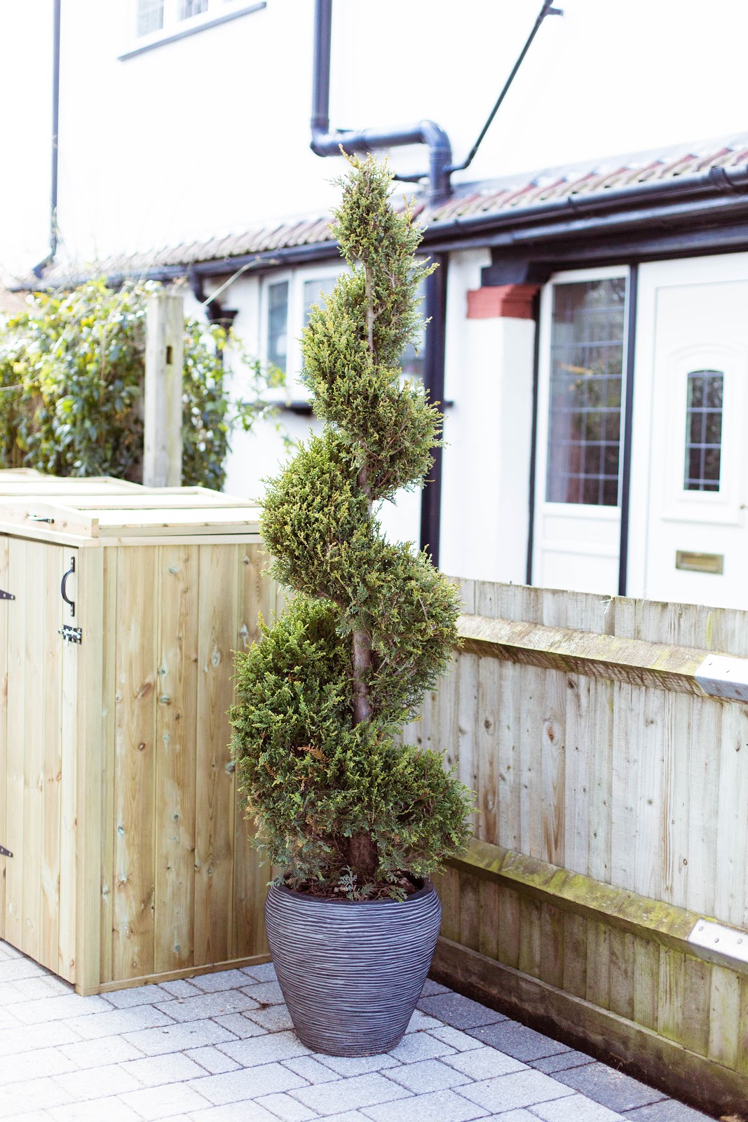 I have been doing some planting in pots to make the garden and driveway feel more cosy. I am loving structured plants at the moment like buxus and leylandii which have quite an architectural effect. Even though we have roses in our front garden, I don’t think I will be planting them in the future. The weeds drive me nuts and they only tend to look good for a relatively short period. I want something that looks good pretty much all the time which is why structured plants seem to be my best bet. There are some artificial plants that look quite good but I just feel funny about fake plants.. Never say never but I think I would prefer a low maintenance plant over a fake one.