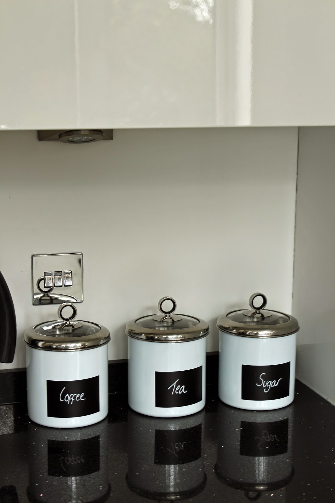 I love the way ceramic containers look but stainless steel certainly seems like a more durable option. Although, with stainless steel the problem is possible dents rather than chips. You can never win, can you? My previous storage jars were black but this time around I decided to look for white glossy ones. White will stand out much more from the black worktop and it will also brighten things up a bit.