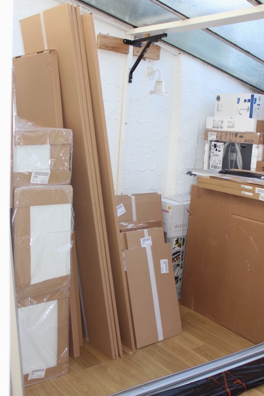 Finally our kitchen remodel has started (one week later than expected because the builders previous job got delayed). Our kitchen had arrived on time though and for a week it had been sitting in our conservatory ready to be installed. We were lucky we had this extra space as I don’t know where we would have put it otherwise.