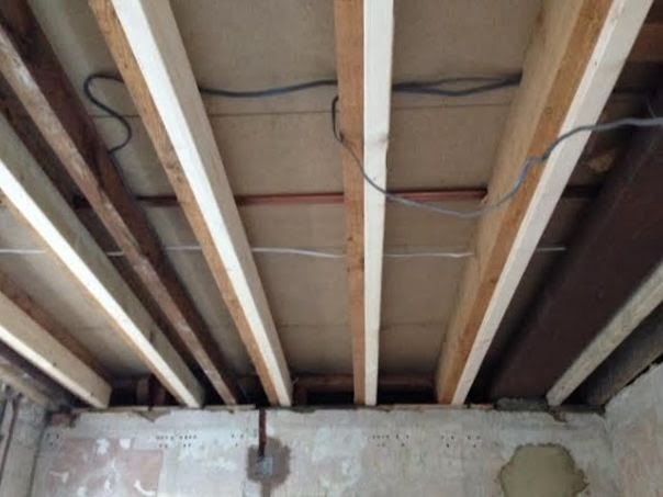 | Old ceiling is taken off and new beams are put in for the new ceiling |