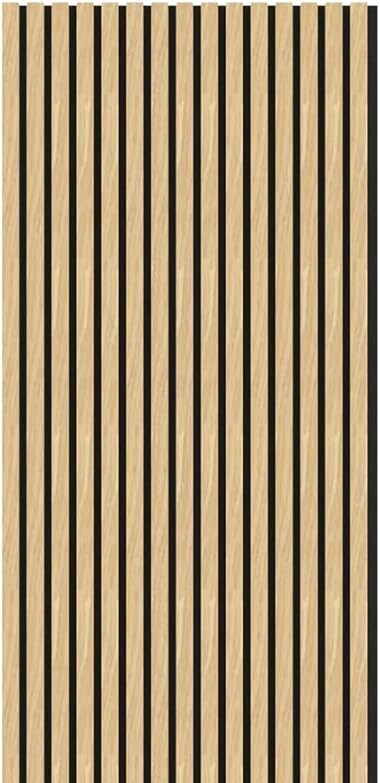 Since we were putting ours in the laundry room (tucked away and low-traffic), we didn’t feel the need to spend a fortune. We ordered our acoustic wooden panel from Amazon, and it does the job perfectly. It’s not solid wood, but MDF slats with a real wood veneer and felt backing, which makes it ideal for spaces like laundry rooms or hallways. You could definitely use it in a living room too, although I wouldn’t recommend hanging anything too heavy on it (like a TV). It looks great, but it’s not the strongest material, so you’ll want to be a bit careful during installation to avoid damaging the panels.
