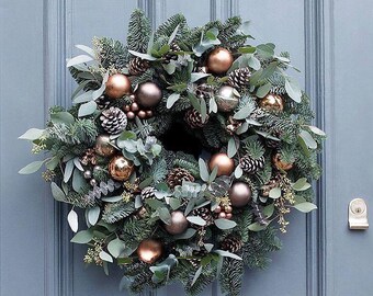 I really wanted to do a Christmas wreath workshop this year but didn’t have the time. I knew I wanted a pine/eucalyptus wreath with metallic baubles. I’ve never ordered a wreath from Etsy before so it was a bit of a gamble but oh my goodness I love this Eucalyptus Christmas Wreath. It’s a really good size (16 inches) and the quality is just superb. I love a real wreath but if you go for an eucalyptus/pine wreath like I did, remember to spray some water on it every 2-3 days so it stays looking fresh for longer.
