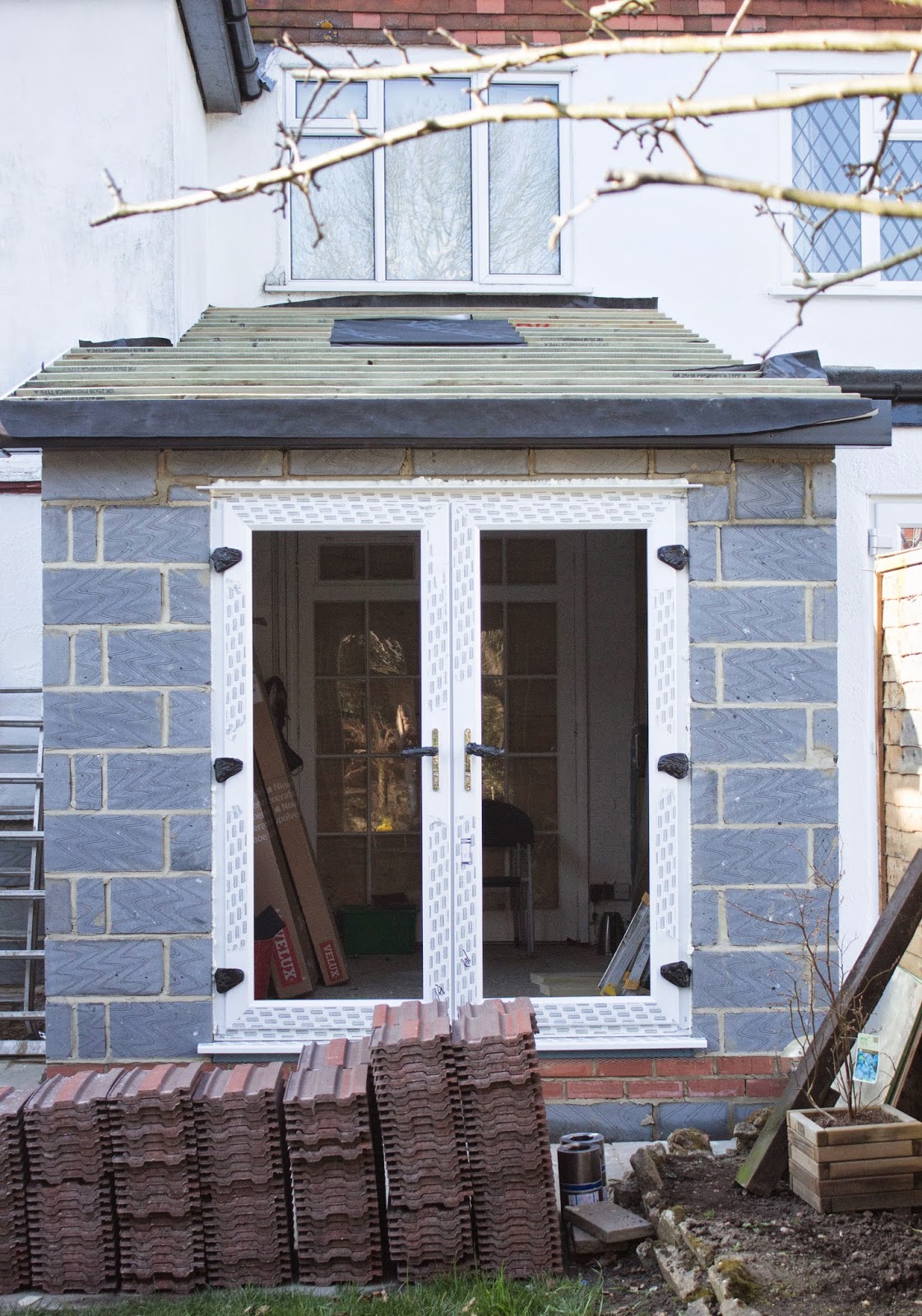 Our windows and double doors also arrived this week which was very exciting! Velux is the most well known brand for roof windows so I didn’t even bother looking elsewhere. Luckily, my builders agreed. We chose one large window (rather than two small) because I felt it will look better in a relatively narrow room and create more impact. Based on what I have seen so far, I think it was the right choice. We chose the window from Velux Integra range which is a remote controlled window. The window is so big that I think it’s necessary to have an innovative open and closing system. It’s just so much more convenient than having to do it manually (especially because it’s so heavy). You can use predefined programs and it has (this is my favourite part!) a rain sensor in case you forget to leave the window open. How fantastic is that! The velux is positioned towards the dining room so that more light will fall into the dining room (as we agreed with the architects). It is in line with our upstairs bedroom window which seemed like the ideal position in order to keep things symmetrical.